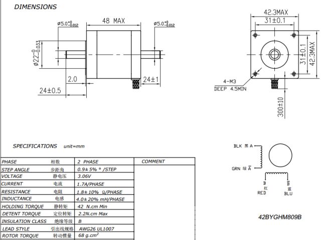 N-001 2相バイポーラーステッピングモーター(両軸)400P